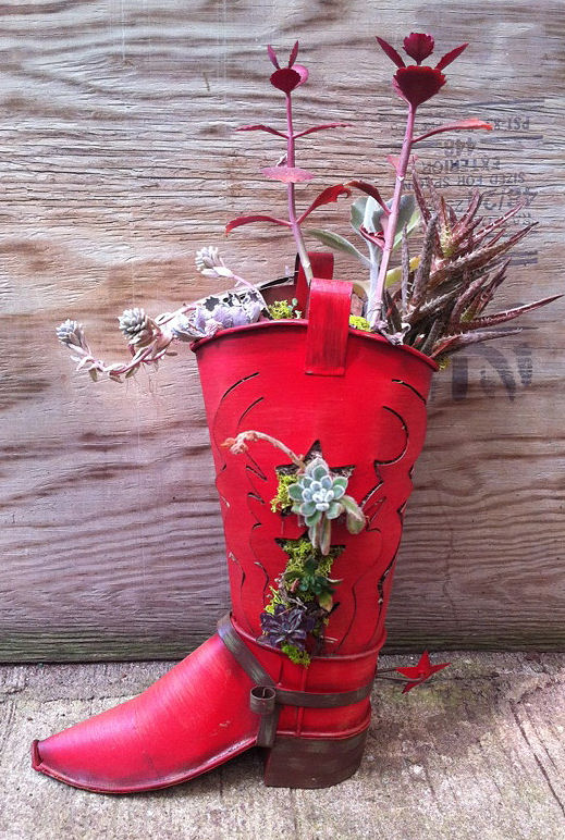 No matter how large or small, a plant seems to be able to find its way into anything with an opening large enough to put in some soil.