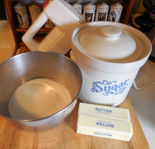 - Preheat the oven to 350 º F. Cream together the butter, sugar, salt and cinnamon until the mixture is light and fluffy. Add in the eggs and mix well.