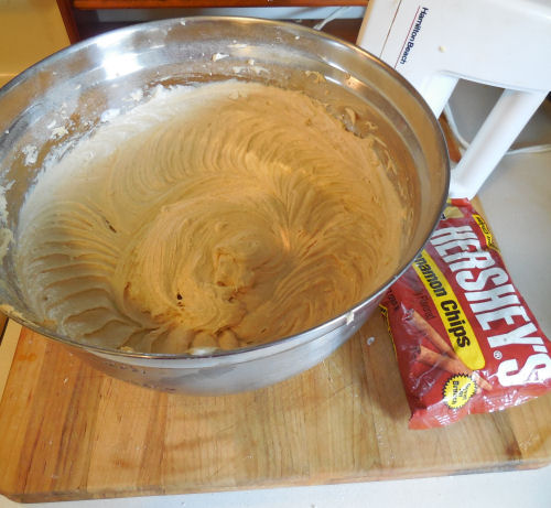 Next comes the cinnamon chips. Just fold them in.