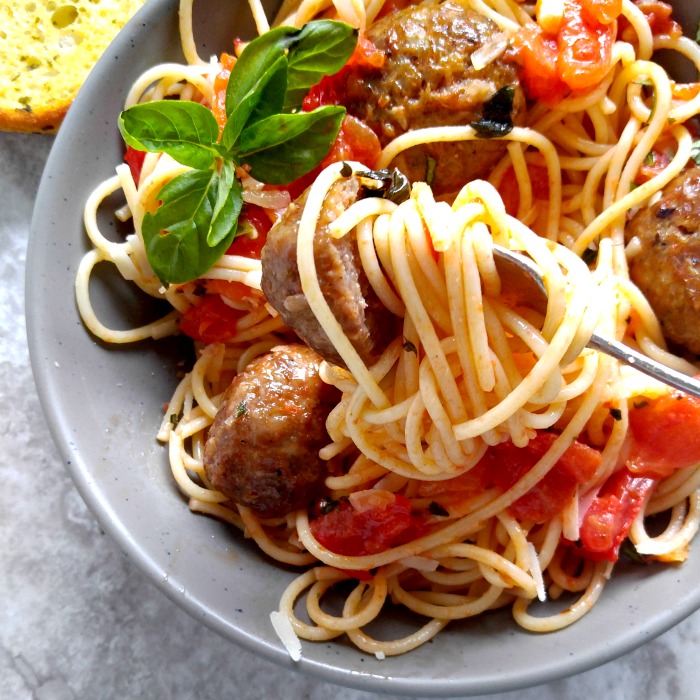 I’m not kidding folks. The flavor of this dish is amazing! It is silky and buttery with a hint of spice from the Abruzzese meatballs. YUM!