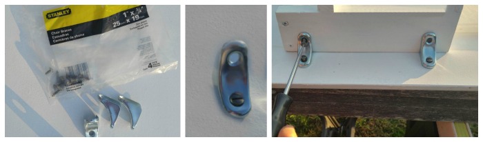 We used Stanley 1″ x 3/4″ chair braces to attach the DIY Cutting Board Holder to the cabinet door. They had a smooth, rounded look to the and seemed less industrial looking than normal L shaped brackets.