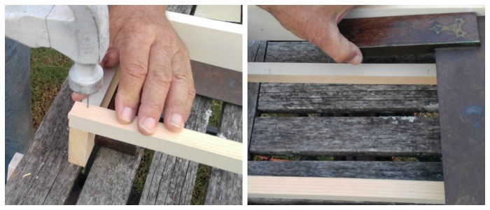 - Fasten the smaller pieces of wood to the front with nails.