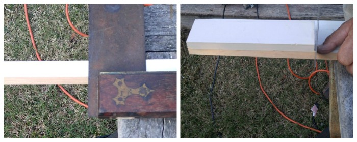 We had a lot of wood left over from the shelving that we used for the pantry make over, so it was just a question of deciding how large we wanted the holder to be and cutting the wood in those sizes.