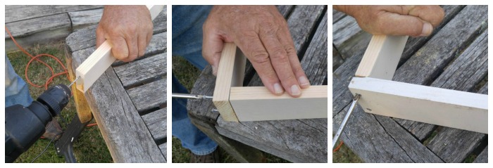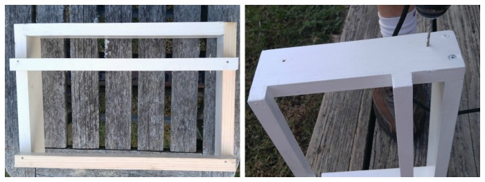 Next we drilled holes for the screws and attached the side pieces to the bottom edge.