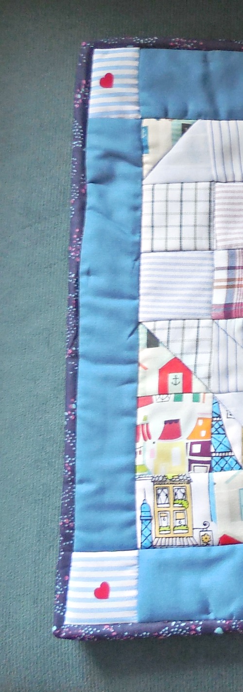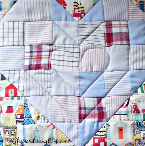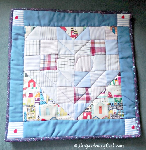 **For quilters, the stitching to create the lines of the two hearts on the front is called “stitching in the ditch.” It’s when you follow exactly the edges of your blocks, in this case in a heart pattern.