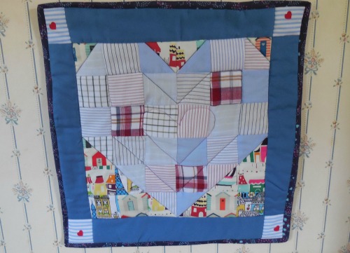 These are then joined to the large memory square front section to form a sleeve.   Our hearts came from boxer shorts my mother bought my father.