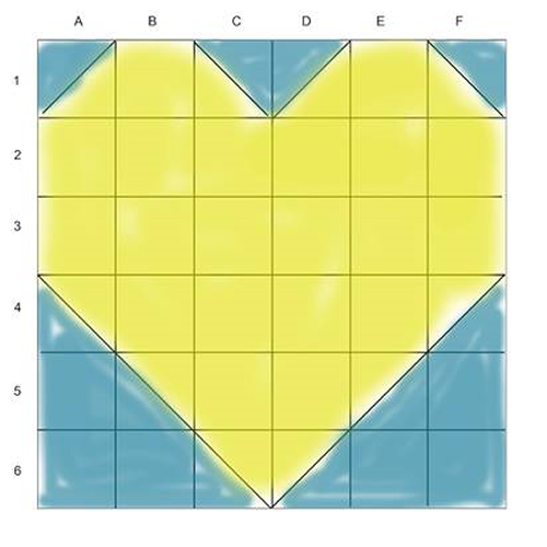 The size of the front section before edging measures about 12 x 12 inches.   You will also need some half squares to make get the heart shape correctly.