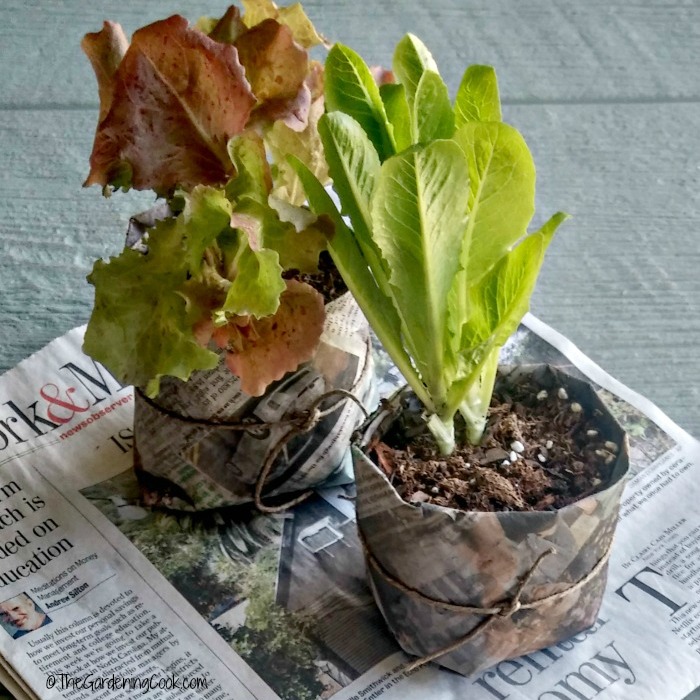One of the things that I like most about these DIY newspaper seed pots is that you can plant them in the garden container and all.