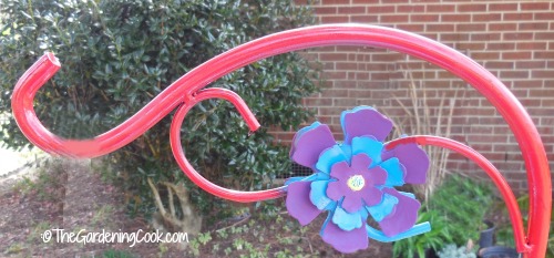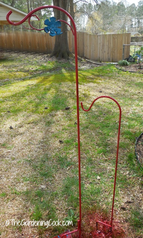 I sprayed the Shepherd’s hooks well with the Sunrise red. The Rustoleum is a good choice because it protects from both rust and the weather.