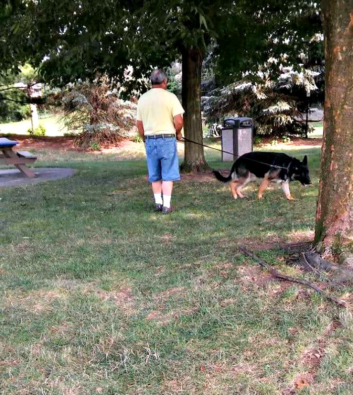 She directed us to an area that had wonderful covered picnic tables. Be sure to always offer water when you stop for a noon meal, even if your dog does not eat then.