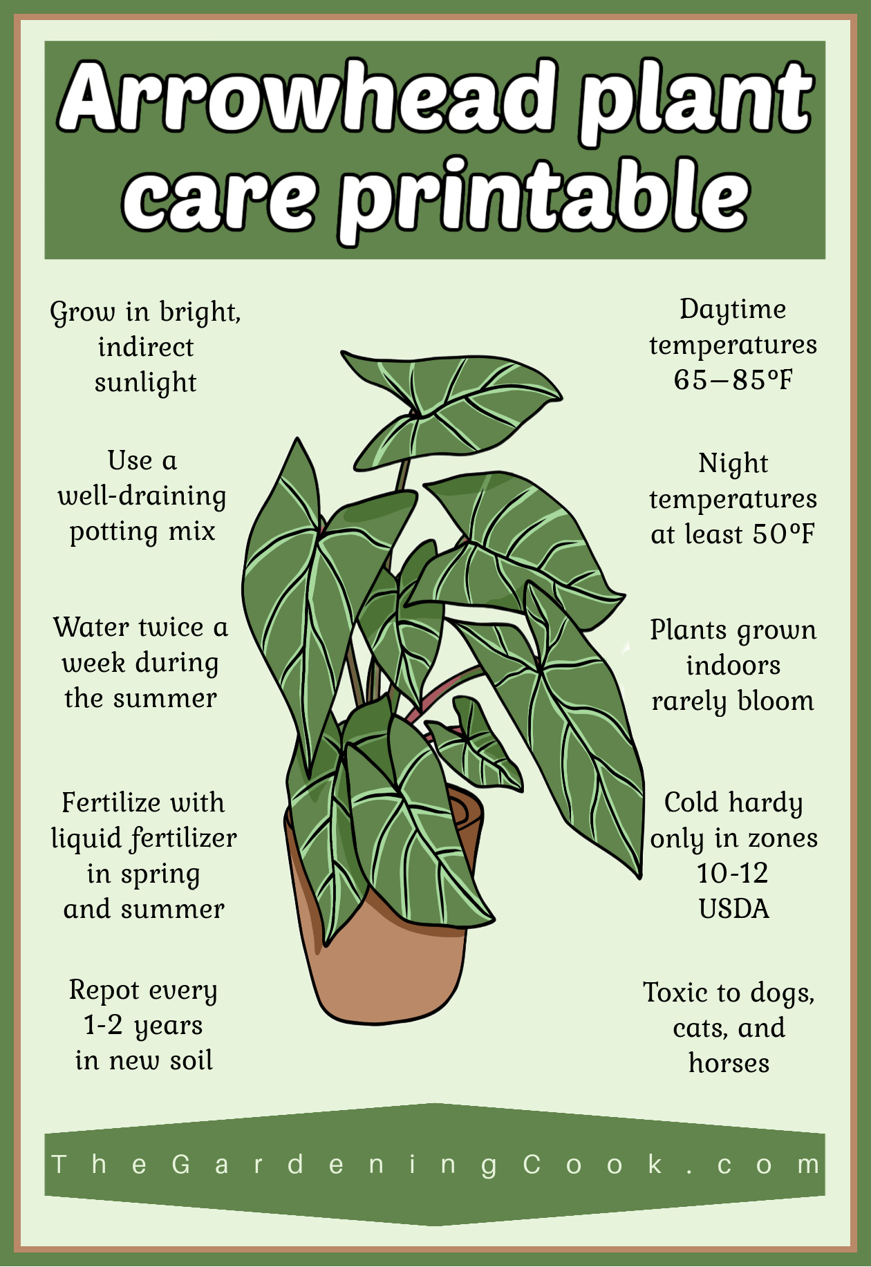 You can also print out an arrowhead care tips gardening printable for future reference.
