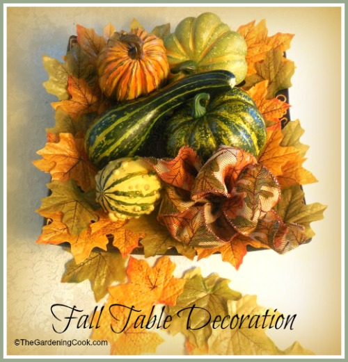 That is all there is to it. This fall table centerpiece took all of about 10 minutes and $3 and I have a lovely fall table decoration that will satisfy me until I get a yen to change it out.
