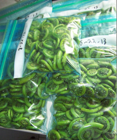 One oddity I noticed in your pictures...Fiddleheads come up in spring, but your bags are labeled August..what's up with that?