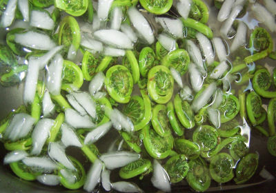 The color of the blanched fronds is lighter than those before boiling.