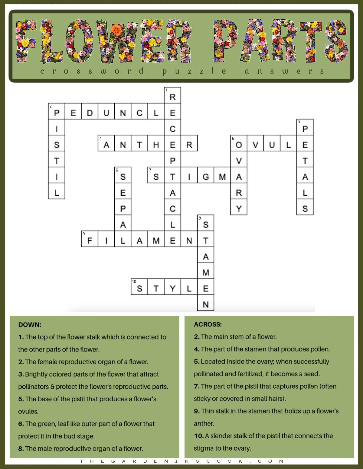 - If you get stuck, you can refer to the flower parts crossword puzzle answer key (PDF & JPG).