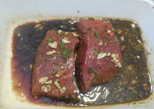 Pour over the steak. Place in the fridge for most of the day.
