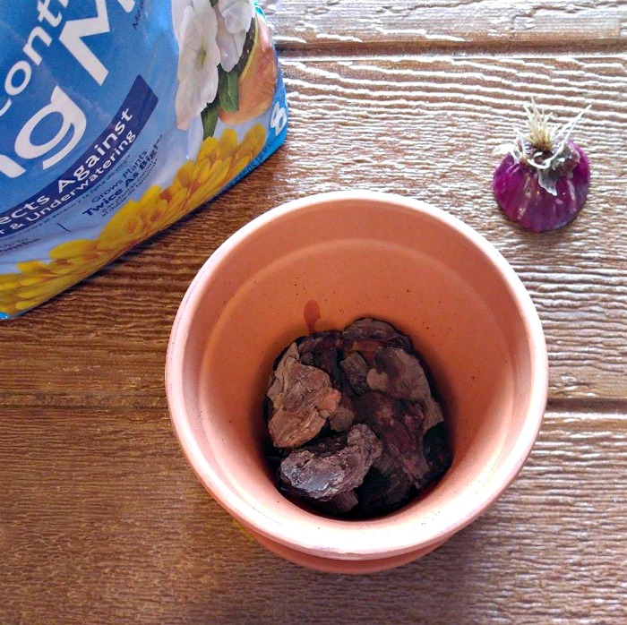 Fill the pot with a well draining light potting soil. I chose Miracle Grow Moisture Control Potting mix that is very light.