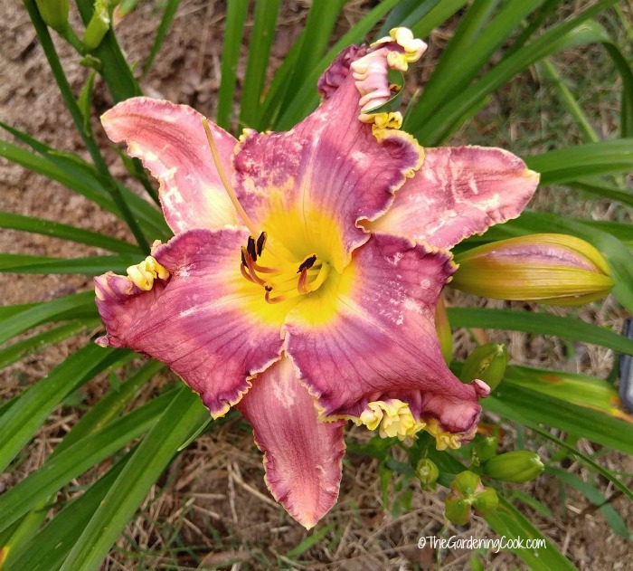 King George daylily is a royal beauty, for sure! This spectacular variety has a bloom that is 7″ in size. That is the largest one in my garden, so far.