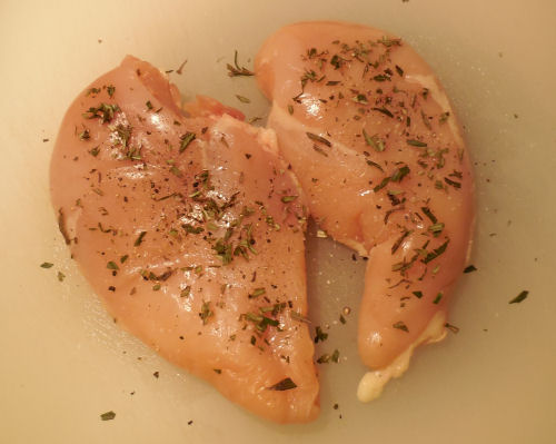 - Pre heat oven to 400°F. Season the chicken with half of the rosemary, salt and pepper.