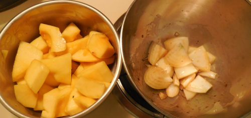 The chicken has a delightful sweet/savory topping and the onions and squash are infused with the flavor of rosemary, balsamic vinegar and olive oil.