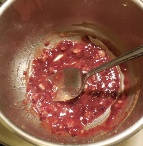 Meanwhile, combine the raspberry preserves, dijon mustard, ginger, garlic and the remaining vinegar.