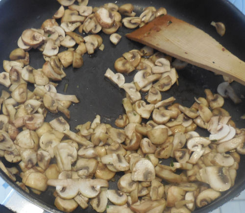 I cooked my mushro0ms in a bit more oil (spraying again with Pam) in a separate pan but you can cook them in the same one too.