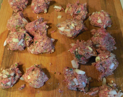 I divided the mixture in half, then in half again and again and again to end up with 16 pieces of mix for meatballs.