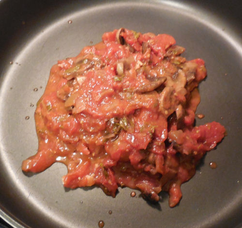 Place the mushroom marinara sauce in a skillet and simmer gently.