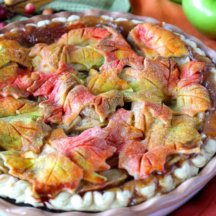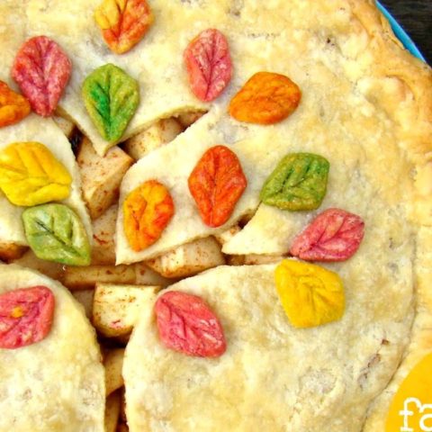 This pie crust looks difficult but actually is not. To make the design, just use a large maple leaf die cut over the top of the crust. The leaf will act as a stencil.