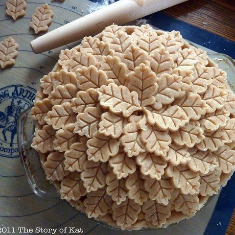 Making a leaf edge pie crust is very easy to do. Use leaf pie crust cutters to cut about 65 leaves of different designs.