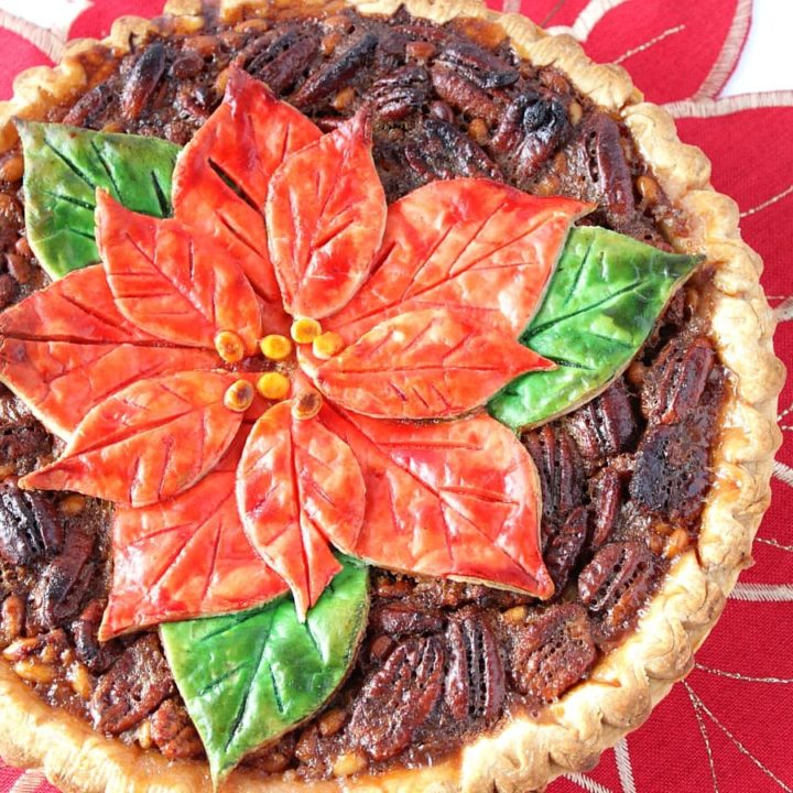Are you still looking for inspiration? One of these pie crust decorations should be just the idea to add a touch of flair to your Thanksgiving pies this year. This adorable turkey crust pumpkin pie is much easier to make than you might think. You don't even need fancy cutters to get the shape. A card stock pattern of the pieces cut out with scissors will do the job. This delightfully colorful autumn leaves apple pie may look like it’s difficult to make but with these easy tips and tricks, you too can make an adorable (and delicious) easy pie crust design! Apple pie designs such as this one always deserve a special place on any dessert table. They’re not only a pretty way to decorate apple pie, they’re also great conversation starters. Decorative pie crust edges take any pie to the next level. In this design, the process of lattice work and braiding are combined for a really intricate look. This technique takes some time to master, but is worth it for the rave reviews you will get on Thanksgiving day. Feeling a bit crafty? This easy DIY Stenciled Pie Crust project just takes a few extra minutes to add some cinnamon sugar or powdered food color over the top of a special pie stencil. Once the decorating is done, then bake as usual. Give your holiday baking a distinctive flair that shows you really "cook with love." This crust takes a bit of practice but the end result is worth the effort! Once you get the knack of it, the project really is not that difficult. Your family and friends will never believe you did it yourself! Egg wash makes cinnamon sugar stick to the pie crust and the design can be varied according to the stencil you choose. The beauty of this pie is the domed top. The leaves are cut in a similar way to the leaf edge pie crust above, but then they are layered over the top of a pie recipe with lots of filling in it and then baked. The result is an amazing textured pie crust design that screams fall. Take your crimped pie crust to a new level with a fishtail-braided rim and a scattering of pie crust cutout shapes. A dusting of powdered sugar completes the look. Pie crust decorations like this will help you go from the "ooh" to the "aah" stage this Thanksgiving. Decorative pie crust tops like this fall apple pie design are a great way to make use of pastry off-cuts. The cut out stem design gives a vent to the apple pie filling center and the hand painted leaves bring the color of autumn to the Thanksgiving table. For another take on this idea, be sure to see my Thanksgiving fall leaf cookies. Remember the knit sweater that your mom used to wear on chilly days? It has lots of cables, braids, and maybe a few other intricately woven details. While vintage sweaters might not exactly be your style, This unique pie crust design uses a knit sweater theme to make the most stunning pie crust ever. Decorative pie crust tops are not just for Thanksgiving! This festive poinsettia pie crust topper has a painted design that is just perfect for Christmas. The pie crust cutouts are easily done and the design takes just minutes to prepare.Decorative Pie Crusts