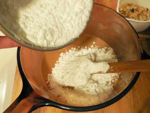 Add the confectioner’s sugar, a little at a time. It needs to be mixed well with each addition or it will be lumpy.