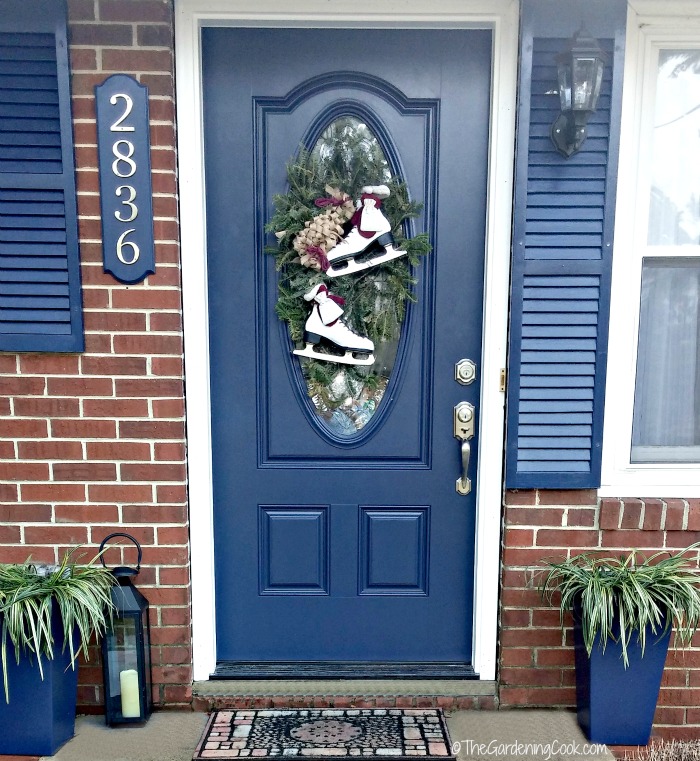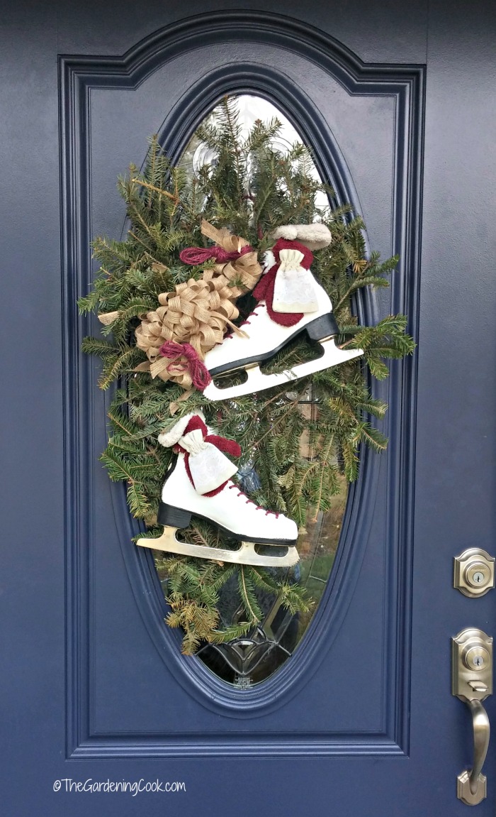 For Christmas this year, I had an ice skate door swag that was decorated in red with a Christmas bow and some seasonal decorations.